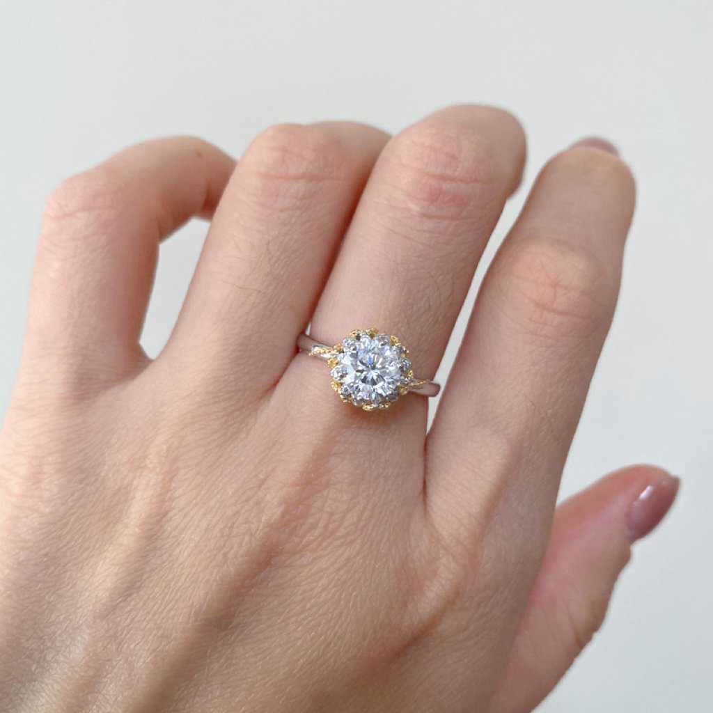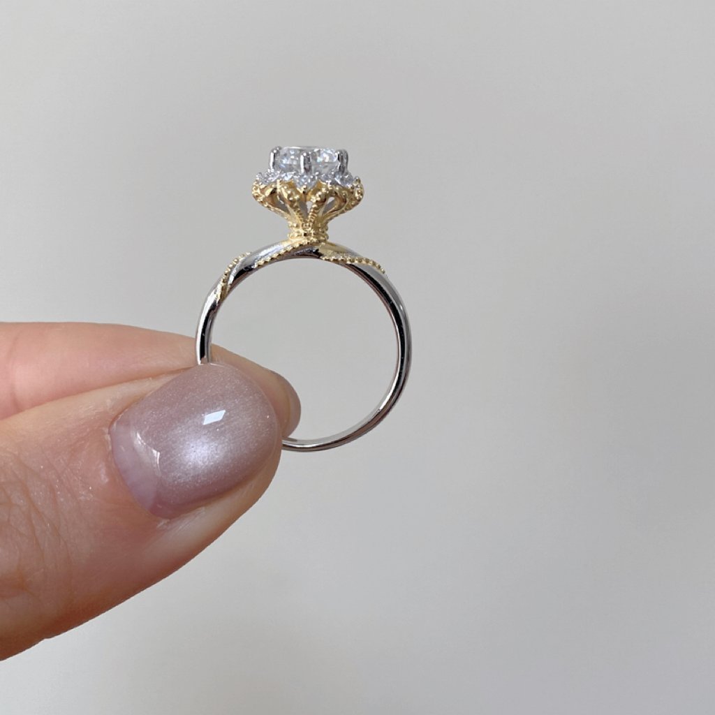 Main stone: Moissanite 1ct or 5A Cubic Zirconia 6.5mm