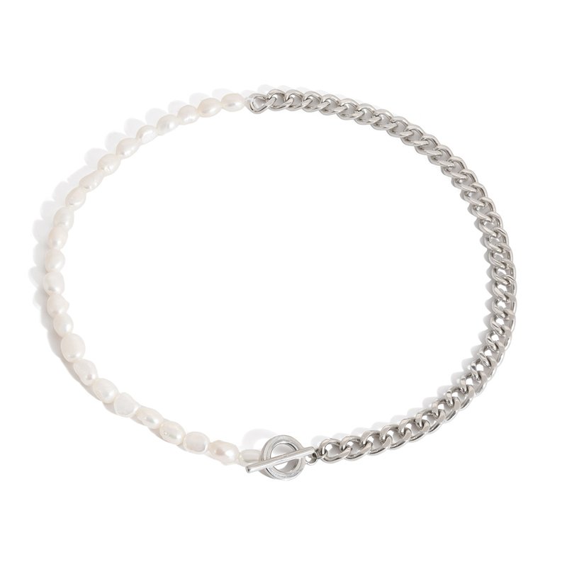 Stainless Steel Freshwater Pearl Cuban Chain Necklace