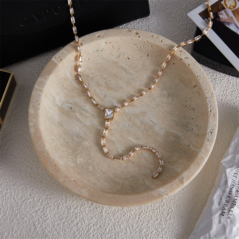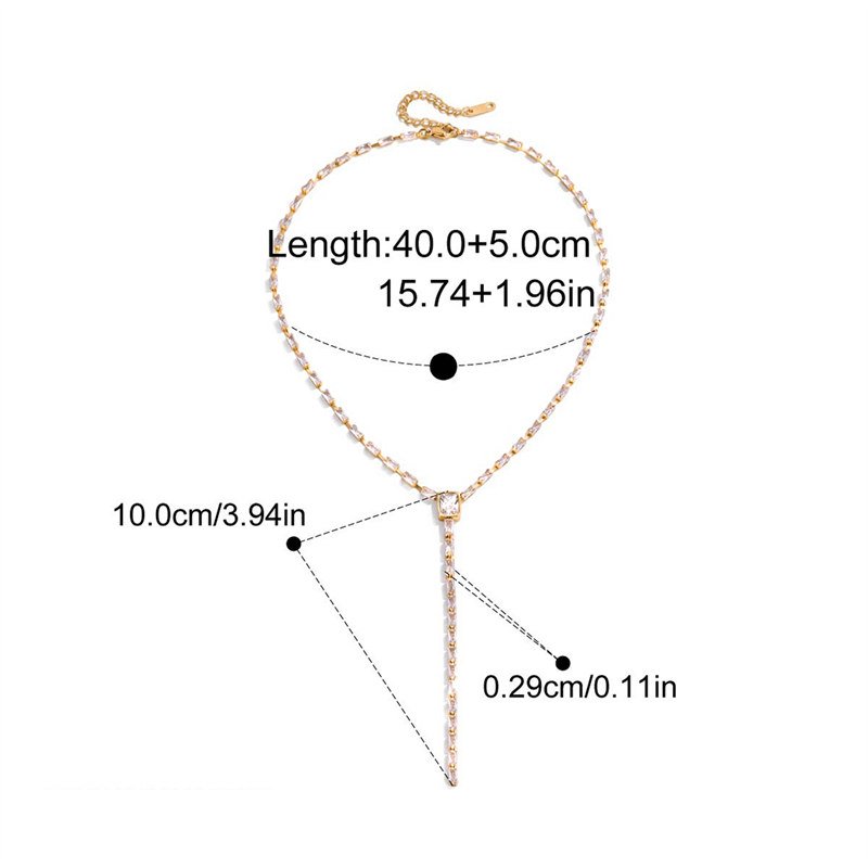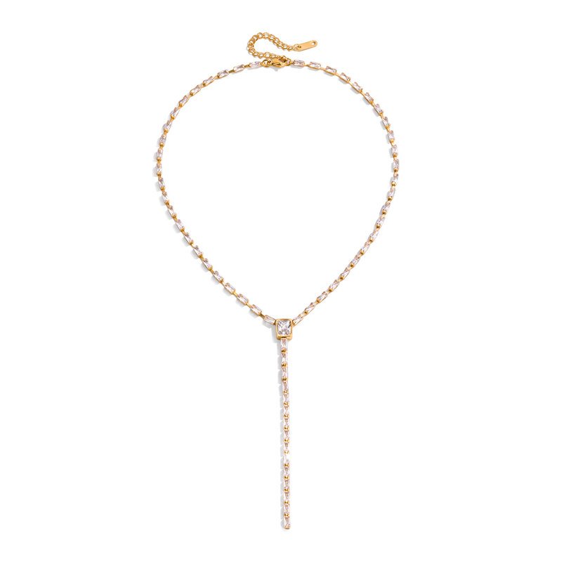 Stainless Steel Square Cubic Zirconia Y Shaped Necklace