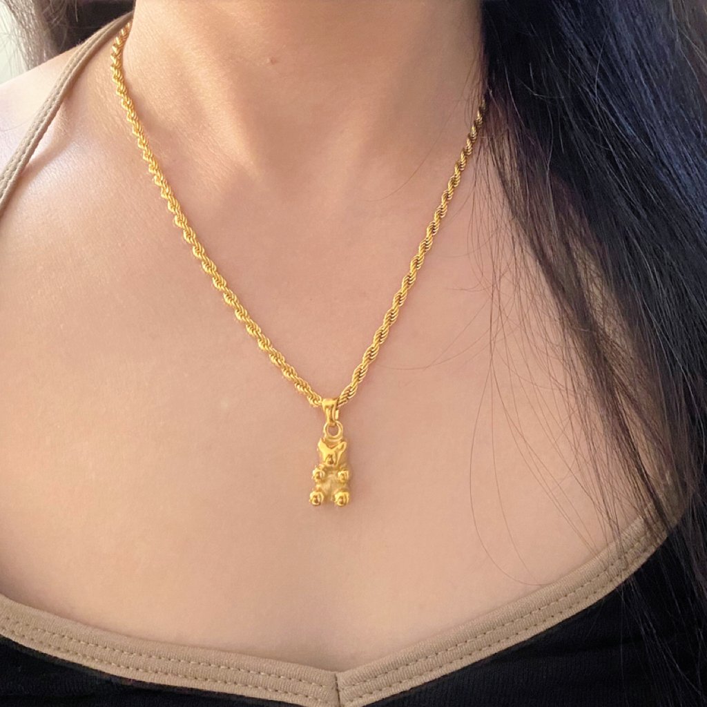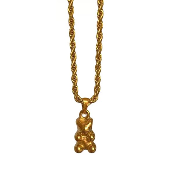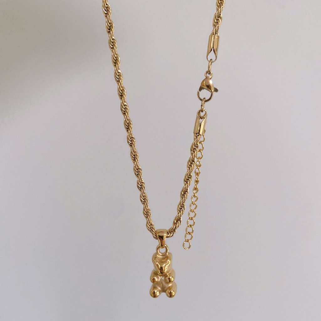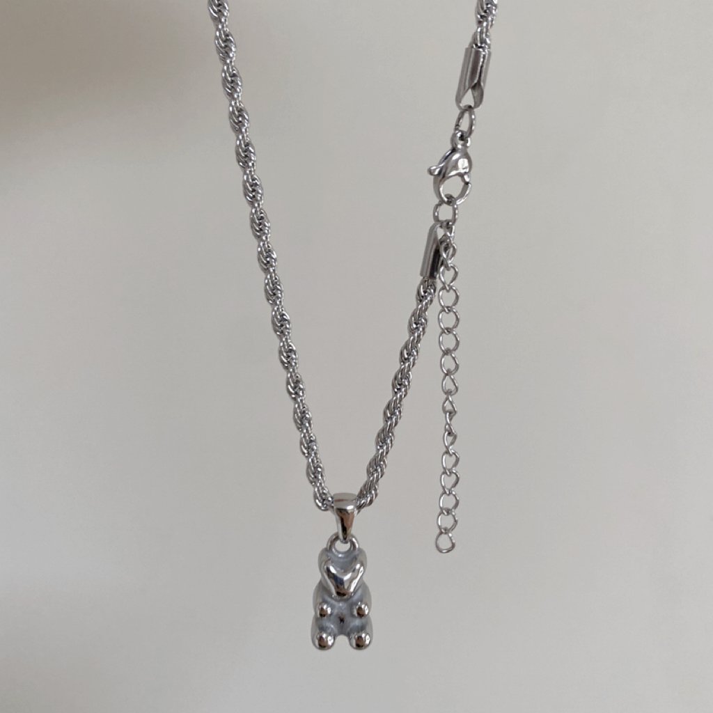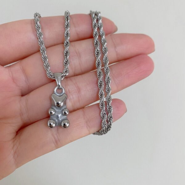 Stainless Steel Bear Pendant Necklace Rope Chain
