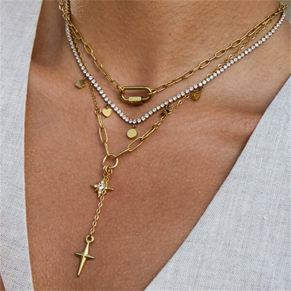 Necklace length: Tennis necklace 40+5cm, Star pendant necklace 45+5cm, Carabiner necklace 40cm